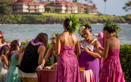 * 4:30 PM: Bar opens, photo opportunities with fresh flower leis.
