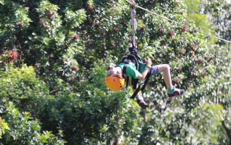 You will be fitted with a harness, a trolley system, lanyards with safety clips, gloves, and a helmet. The equipment is similar to rock climbing equipment, but specially designed for a zipline canopy tour course.