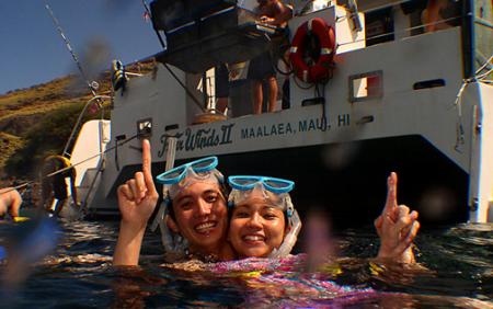 MAUI Activities - The Four Winds II is a 55 foot glassbottom catamaran, and is fondly referred to as "the boat for fun-lovers". Although she usually travels under the power of her engines, the Four WInds II does have sails that can make use of the tradewinds when available. Once onboard, you'll soon discover why Maui's visitors consider this trip to be one of the best to Molokini and why it has become a local Maui favorite too. With a crew that is completely dedicated to your needs and providing you absolute fun, this trip is a must-do for families.