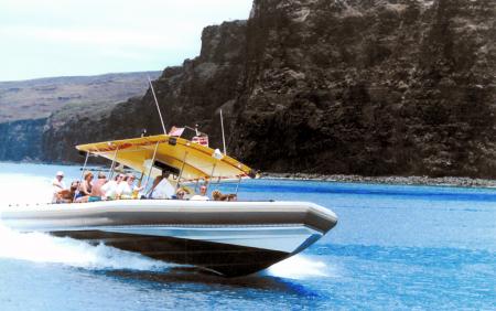 For current availability of this tour or alternatives, give us a quick call: 808-740-2537 MAUI Activities - Maui Adventure Cruises feature Explorer Super Rafts, the largest in the islands and the only rafts with an onboard restroom. They are powered by twin engines and are fast...