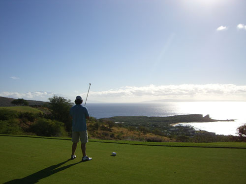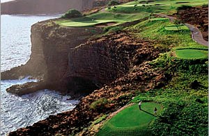 MAUI ACTIVITIES - Enjoy a day at the Challenge At Manele, a par 72 course built on several hundred acres of natural lava, terraced on a hillside overlooking Hawaii's finest white sand beach, Hulopo`e Bay. A work of art designed by Jack Nicklaus, the five-tee concept challenges even the most experienced golfers with precise tee shots over natural gorges and ravines.The par 3 Number 12 "signature hole" plays from a 150-foot cliff above the crashing surf, requiring a 200 yard tee shot across the ocean. Every hole guarantees golfers stunning views of the deep blue pacific where dolphins and whales are often sited during play.
