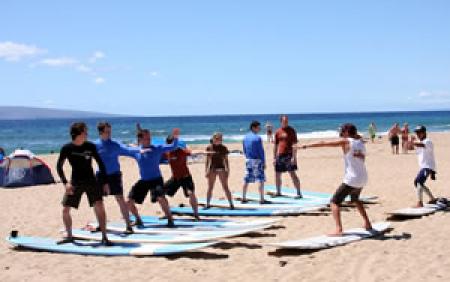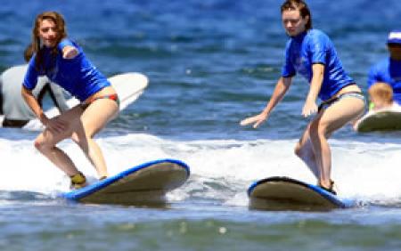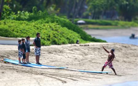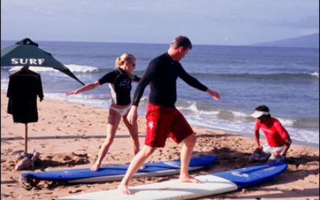 MAUI Activities - Learn how to surf in Hawaii! Royal Hawaiian Surf Academy invites you to join us as we take you from the sand to the sea. Kimo Kinimaka, "Chairman Of The Board," has spent over 20 years of his life safely teaching the ancient Hawaiian sport of surfing. Our patient instructors are here to insure an enjoyable experience for all.