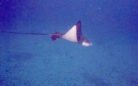 THE PACIFIC MANTA RAY (Manta Alfredi) - The wing span of the near-shore Pacific Manta Ray averages 5 to 8 feet but can reach well over 14! They have no real teeth, no stinger, and a harmless disposition. Their only defense is to flee.