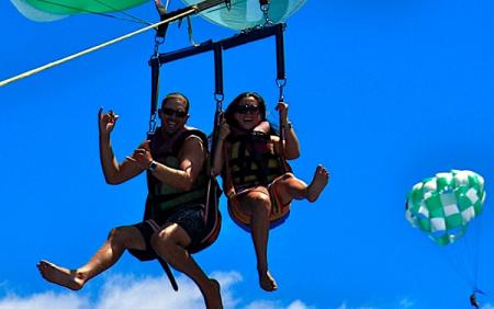 Duration: Individual parasail rides vary according to ride level (standard, deluxe or out of this world) and total number of flyers riding together. Maximum of 6 passengers per boat (flying or observers).