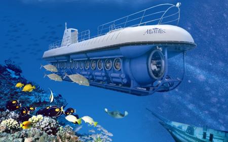 Atlantis Submarines use the world's most technologically advanced passenger submarine. Battery powered to protect the marine environment, the 65-foot, 48-passenger submarine features a spacious, air-conditioned cabin with lots of head and legroom, and large viewing ports to enjoy the action without getting wet.
