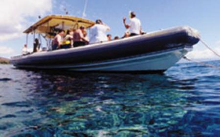 Start your morning with juice and coffee during check-in at Slip #11 in Lahaina Harbor. Souvenir photographs of passengers are taken by a professional photographer when you board our Explorer Super Raft. After leaving Lahaina Harbor, you will head across the channel to the island of Lanai. Two snorkel sites are selected by the captain to provide the clearest and calmest ocean conditions.