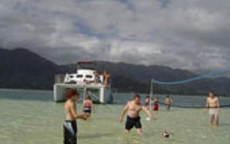 OAHU Activities - Come experience an unforgettable day in paradise. Sail away aboard the Barefoot I and explore the amazing shallow coral reefs and the exotic sea creatures of Hawaii in the comfort of a glass bottom boat. See Gilligan's Island for yourself and other popular landmarks such as Chinaman's Hat. Snorkel, swim, sun, calm water barefoot sailing, Hawaiian style water volleyball, glass bottom viewing of large coral formations and a sumptuous barbecued lunch served on board at the Sandbar. Truly a day of fun in the sun!