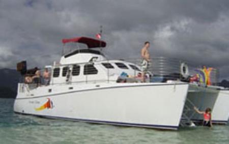 Included are: Roundtrip transportation from Waikiki hotels, hearty picnic lunch, beverages throughout the sail, sanitized snorkeling equipment and personal instructions, glass bottom viewing, water sports and sailing aboard the Barefoot I.