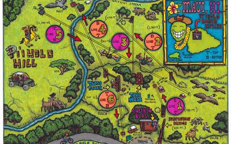 Piiholo Ranch is an 800-acre working cattle ranch owned by Peter Baldwin and his sons Jeff, Duke (natural resource manager) and Chris (cattle operations manager) in keeping with seven generations of the Baldwin ranching tradition on Maui. The Ranch tour operations include horseback trail rides and lessons, and Hawaii's newest and longest zipline eco-adventure. Situated on Piiholo Road near the paniolo (Hawaiian cowboy) town of Makawao, the ranch is at an elevation of 2000 feet on Mt. Haleakala with bi-coastal Pacific Ocean views. A towering eucalyptus forest with many native plant and tree species dot the countryside, and common wildlife sightings include axis deer, mountain boar, the endangered Hawaiian Pueo (owl) and Nene geese. A nursery and preserve for Hawaii's state bird, the endangered Nene, is located on the ranch and is the first and only on Maui listed under the State Safe Harbor Agreement. More than 300 head of cattle roam the ranch, and 40 horses are corralled on the property. A rodeo arena hosts state-wide roping event.TESTIMONIALS: "Experience of a lifetime- we are 63 and 68, Loved it!"
